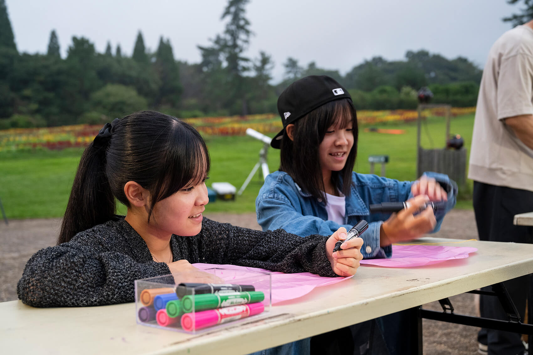そしてもうひとつのお楽しみが、園内に設けられた「天体望遠鏡コーナー」。自由に参加できるので、気軽にのぞいてみると――そこには、クレーターまでくっきり見える月や、遠く輝く惑星たちの姿が! 思わず「わあ!」と声が漏れるほどの感動に、宇宙の大きさを肌で感じられる体験です。