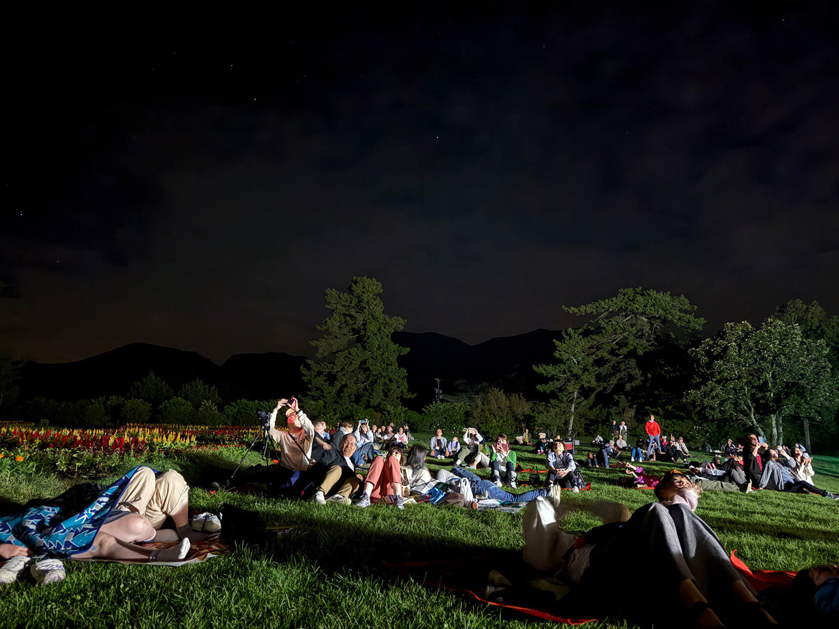 ラストは園内の照明がすべて消され、「星空ガイド」が始まります。頭上に広がるのは、視界いっぱいにきらめく満天の星。都会では決して見られない数の星々が、まるで降ってくるかのように輝きます。